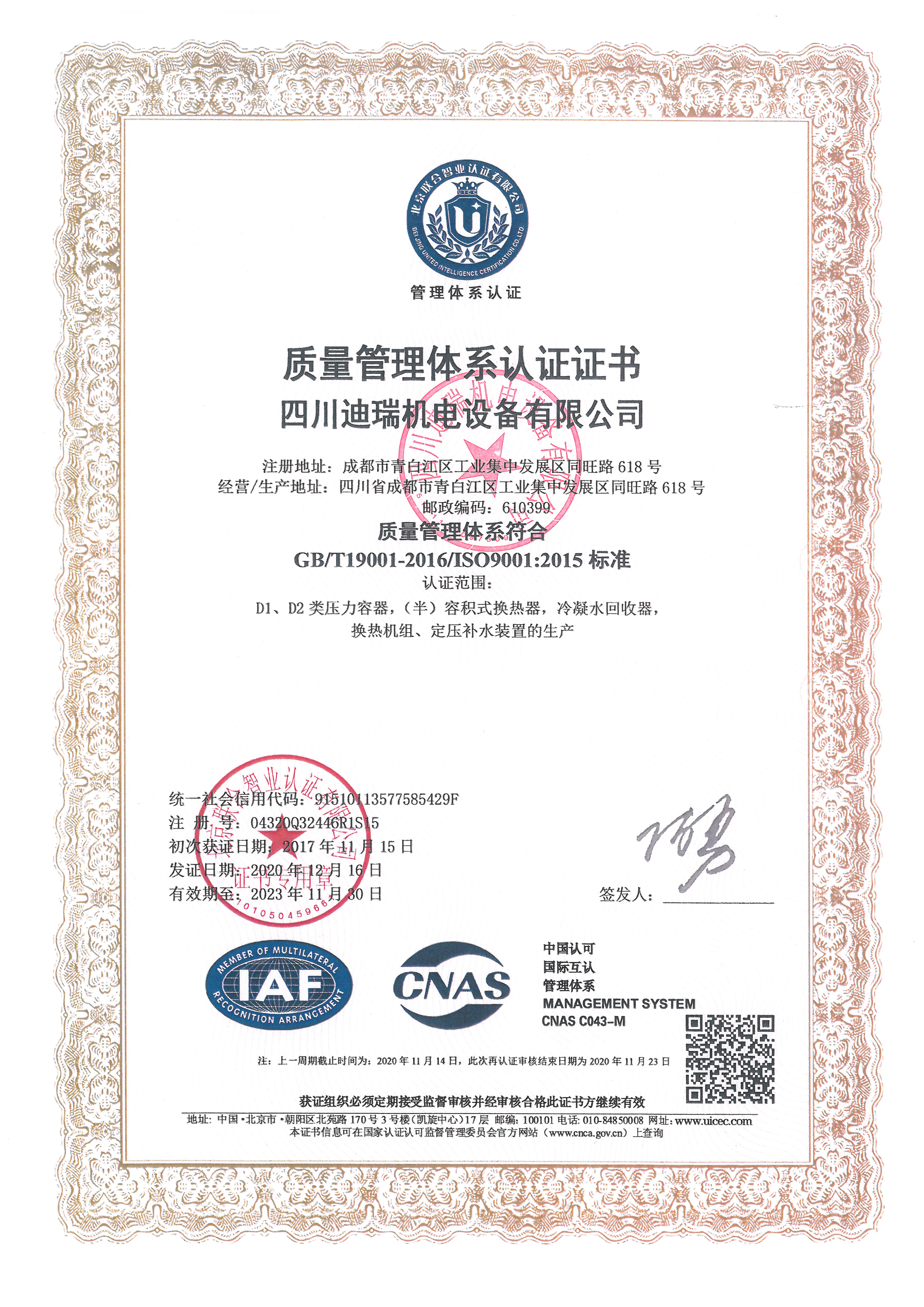 企業(yè)奉行“用戶(hù)至上、優(yōu)質(zhì)服務(wù)、持續(xù)改進(jìn)”的宗旨,不斷改進(jìn)產(chǎn)品結(jié)構(gòu),提升產(chǎn)品性能,并與西安交通大學(xué)能源與動(dòng)力工程學(xué)院建立產(chǎn)學(xué)研合作,取得8項(xiàng)實(shí)用新型專(zhuān)利,正在申報(bào)一項(xiàng)發(fā)明專(zhuān)利。企業(yè)通過(guò)D1、D2類(lèi)壓力容器制造許可認(rèn)證和ISO9001質(zhì)量管理體系認(rèn)證,被評(píng)為成都市擬上規(guī)企業(yè)、成都市專(zhuān)特新精企業(yè)和大中華區(qū)酒店工程師協(xié)會(huì)最佳合作單位。