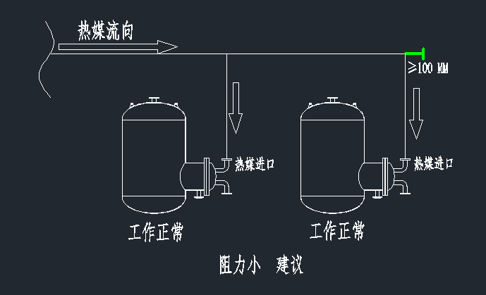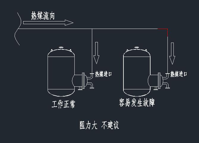 原因二:熱媒不能正常進入換熱器,當幾臺換熱器并聯(lián)使用時,熱媒進口管道安裝不當致使熱媒進入阻力增大,導致熱媒進入困難。