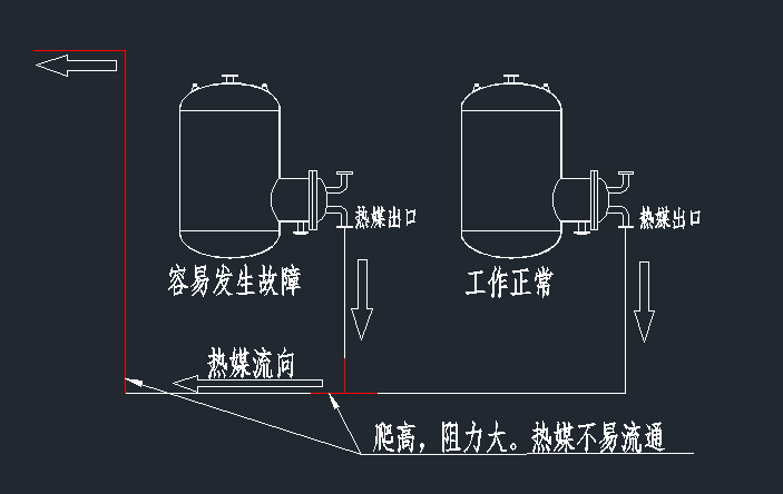 解決方案:降低熱媒出口的阻力,熱媒出口盡量避免爬高。