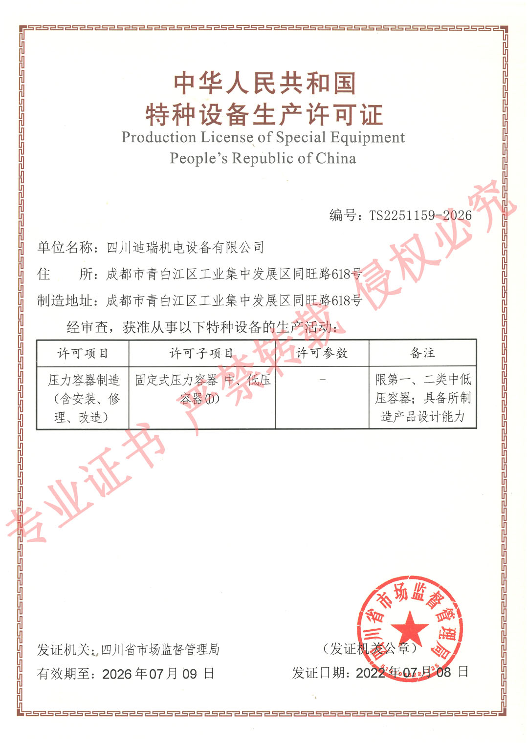 此次壓力容器質(zhì)量保證體系審查的通過是對四川迪瑞質(zhì)量保證工作的充分肯定。同時我司也將一如既往嚴(yán)格執(zhí)行壓力容器質(zhì)量體系的運行。
