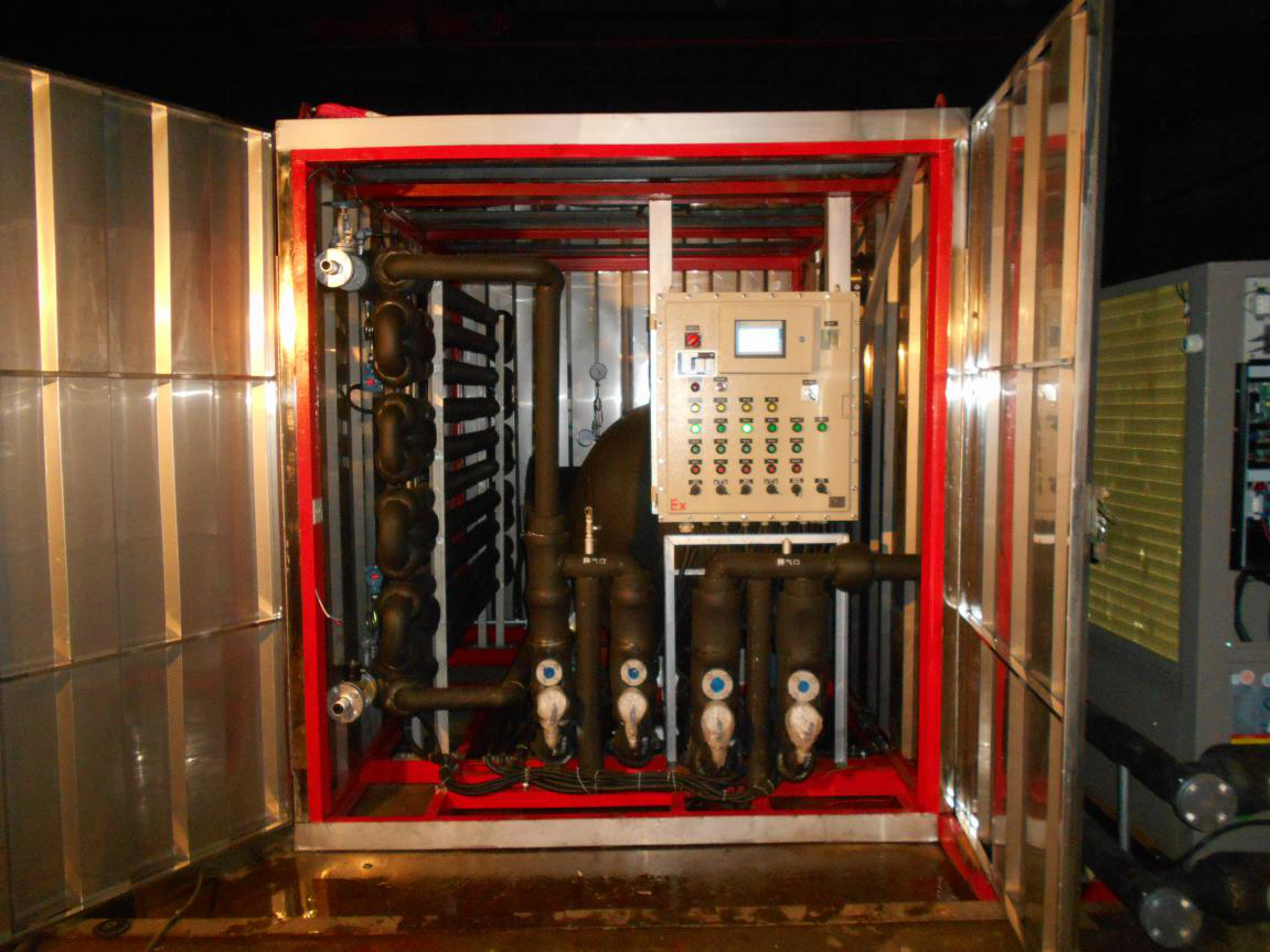 描述:采用復(fù)疊式空氣源為熱媒,高效換熱器和蓄能設(shè)備結(jié)合,一二次循環(huán)泵及溫控控制系統(tǒng)集成DCS,可以遠(yuǎn)傳信號(hào)至中央控制室